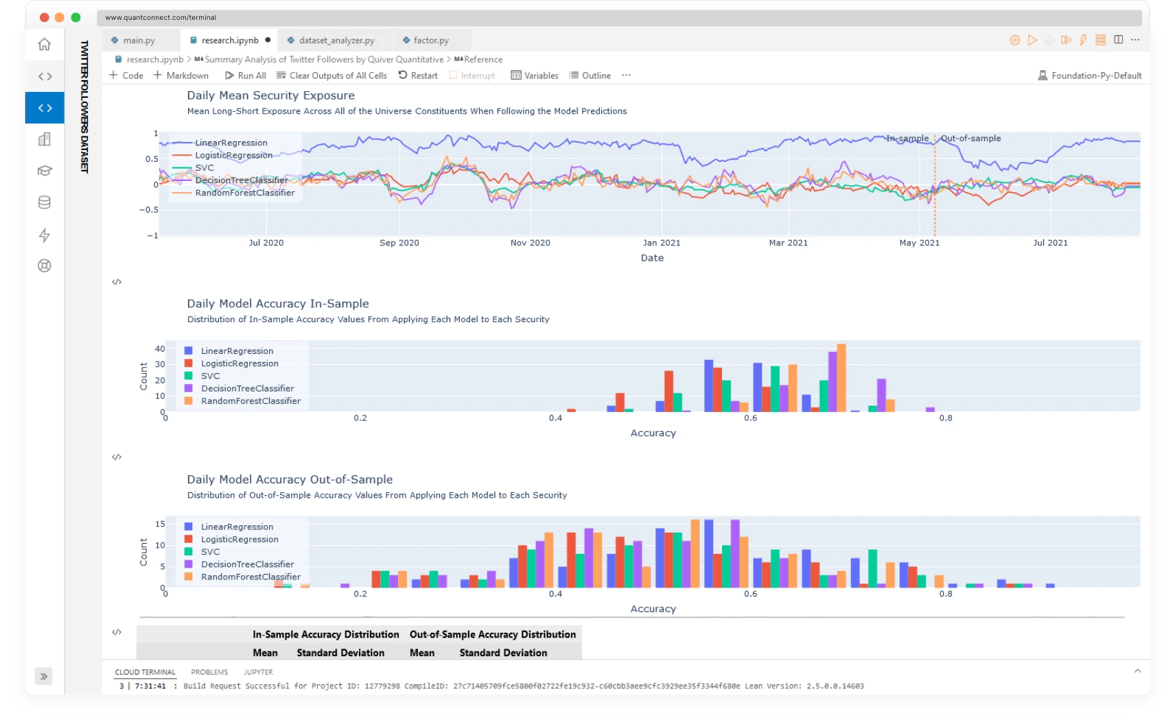 Jupyter Research Environment: Perform interactive strategy research with all the data automatically pulled from the Massive API with the new QuantConnect integration.